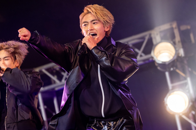 4曲をノンストップで披露した6人は「あけましておめでとうございます!」と声をそろえて挨拶し、最初のMCへ。髙橋颯は屈託のない笑顔を見せながら「直接会えてうれしい」と喜び、桑山隆太は「最高の思い出を作りましょう」と語りかけた。古幡亮は「僕のダンスで落としに行きます」とダンス勇者らしいメッセージを送った。すると、いつもはしっかり者の八村が「…あぁ、(言うべきこと)ふっとんだ!」と慌てる一幕も。こうしたハプニングもライブならではの楽しみだ。福澤希空は、「昨日の大阪公演以上に、(ウサギのように)ぴょんぴょんしたい」と独自ワールド全開のメッセージでファンを喜ばせた後、そんな不思議な空気にも動じない元気印の鈴木曉は、ゆっくり過ごすお正月明けのタイミングということで「みんなでいっぱい動いて5kg痩せましょう!」と、負けず劣らず独特の表現でライブを全力で楽しむことを誓った。