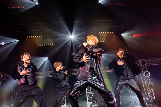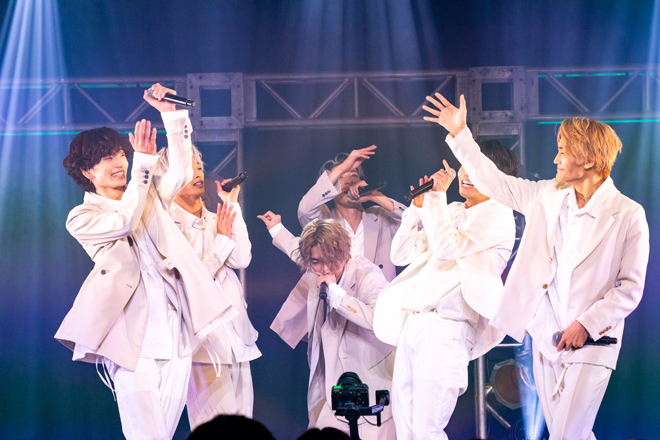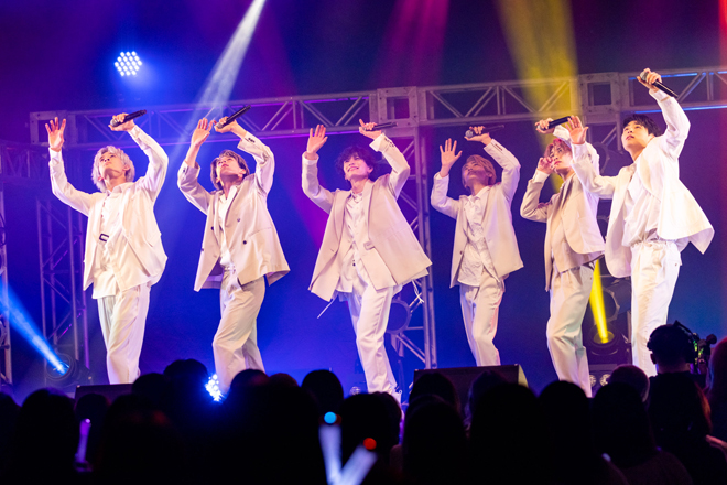 「Shooting Star」からは、粋な白いスーツに身を包んでパフォーマンス。デビュー曲「Only One Life」の、“茨の道じゃなきゃ足りない”“回り道も悪くないさ”と歌う6人の硬い意志にも多くの人が励まされたことだろう。「残すところあと少し。皆をオトしにいくから!」とWindyたちをロックオンし、新曲「The Practice of Love」から怒涛の終盤へ。パワフルな「BREAK OUT」で「みんな、一緒に踊ろう」と叫び、続く多幸感溢れる「SHELLY」では6人のエネルギッシュなパフォーマンスに客席も大きくペンライトを揺らして応えていた。