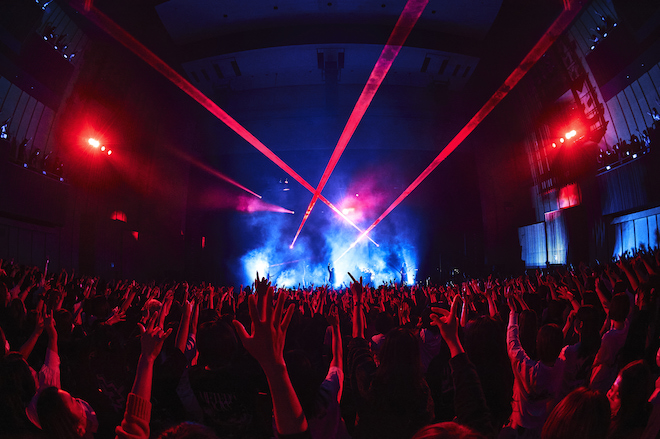 そんな<PHASE 02-“The Unknown”>のファイナルであると共に2022年のthe GazettEを締め括るライブとなった東京公演が12月21日にLINE CUBE SHIBUYAで行なわれた。同公演は『MASS』とthe GazettEの9枚目のアルバム『NINTH』を掛け合わせたパターンで、ここ数年の彼らのモードがより強くうかがえるライブに期待が高まる。ツアーファイナルもチケットはソールドアウトとなり、LINE CUBE SHIBUYAの場内は開演前から熱気に包まれていた。