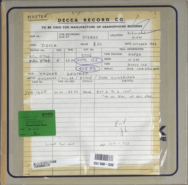 さらに、デジタルメディア評論家の麻倉怜士とリマスターの制作を手掛けたデッカ・クラシックス・レーベル・ディレクター、ドミニク・ファイフ、そしてエンジニアのフィリップ・サイニーとの対談記事も本日公開になった(https://soltiring.lnk.to/interviewPR )。今回のリマスター盤で使用したオリジナルのステレオ・マスターテープの編集修理や、24bit/192kHzの高解像度で行ったマスタリングについて、より理解を深めていただける内容になっている。