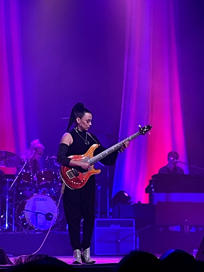 バックを務めるメンバーは、ロンダ・スミス(B)アニカ・ニルス(Dr)、ロバート・スティーブンソン(Key)、チェロ奏者にヴァネッサ・フリーバーン・スミスというラインナップ。非常にタイトでフレッシュで、前半には各所で彼らにスポットが当たる場面もあった。