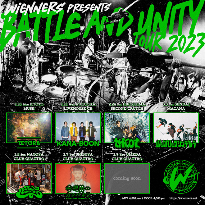 Wiennersが注目するバンドをゲストに迎える2マンツアー<BATTLE AND UNITY TOUR 2023>の対バンを発表した。