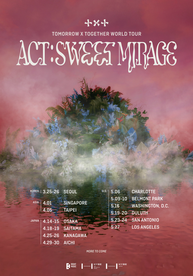 TOMORROW X TOGETHERは5作目のミニアルバム『The Name Chapter: TEMPTATION』を1月27日にリリースする。<ACT : SWEET MIRAGE>は3月25日と26日の韓国・ソウル公演を皮切りに、アジアとアメリカの13都市を回るライブツアーになるという。