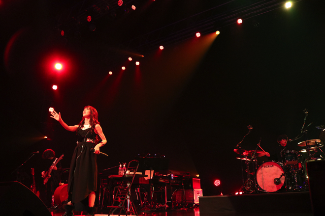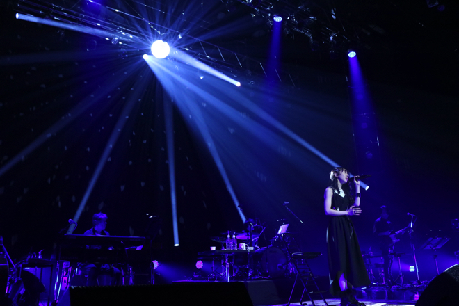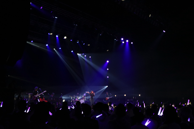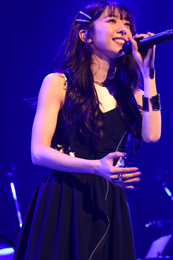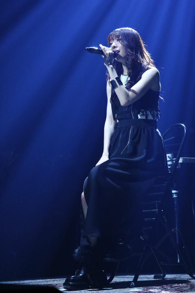 衣装チェンジをはさみ、マカロニえんぴつのカバー「星が泳ぐ」、「宇宙は砂時計」をしっとりと歌い上げると、ソロ曲「蜃気楼」を感情たっぷりに披露した。