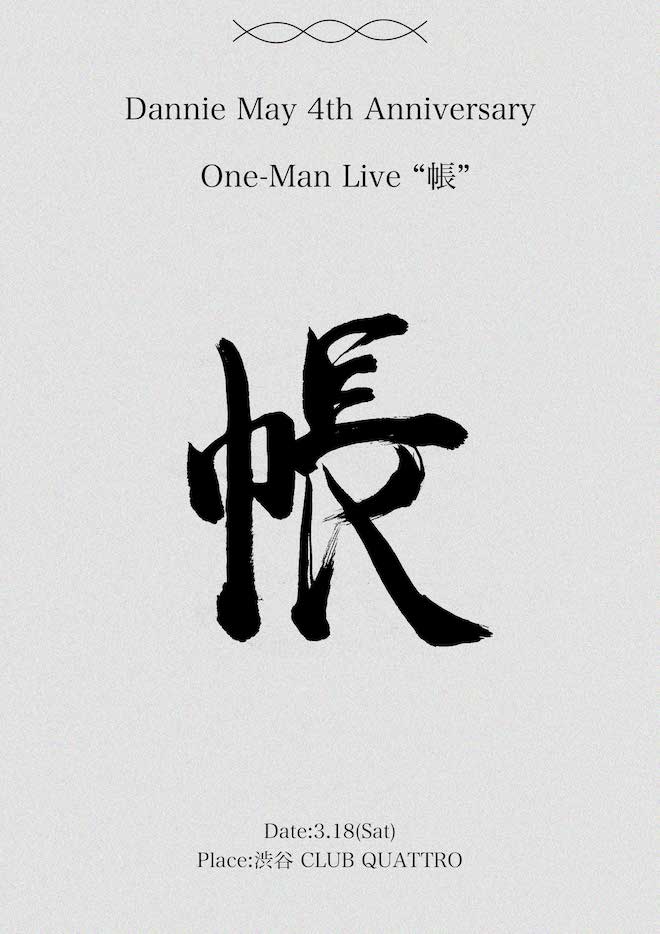 そして始動4周年を記念して<Dannie May 4th Anniversary “帳”>が3月18日 に東京・渋谷CLUB QUATTROで開催されることも発表された。本日よりチケットの第一弾先行販売(抽選)も開始となっており、1月23日23時59分までの受付となっている。