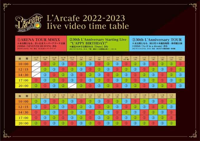 ※各詳細や追加情報は『L’Arcafe 2022-2023』特設サイト、L’Arc-en-Cielオフィシャルサイト、『L’Arcafe 2022-2023』オフィシャルtwitterにて随時お知らせいたします