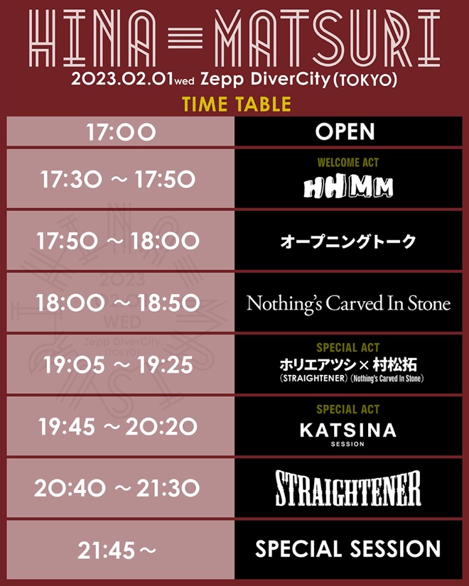 <HINA-MATSURI 2023>タイムテーブル発表、ストレイテナーとナッシングスのセッションも