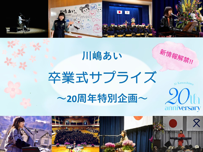 2003年2月14日にデビューし今年で20周年を迎える川嶋あいが、卒業式で代表曲「旅立ちの日に…」を歌唱したすべての学校へ歌唱動画をプレゼントすることとなった。