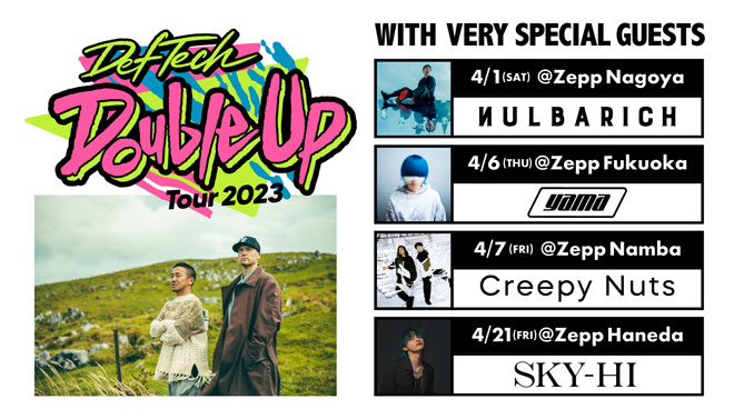 Def Techが4月に名古屋、福岡、大阪、東京の4会場を回る対バンツアー<“Double Up” Tour 2023>を開催する。