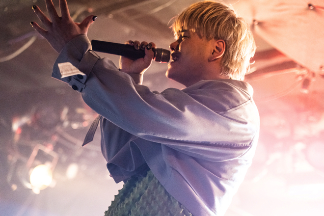 ファーストナンバーは、アルバムでも1曲目「Prologue」。歌詞の通り、OverToneが作る歴史の始まりを見せてくれるように力強く歌い上げる。2曲目「モンスター」、GUCCHIから「今日で最後よ! 心置きなくいきますよー! 全員でいこうぜー!」と、クラップの合図。客席はクラップでライブ序盤から盛り上がることを忘れない。