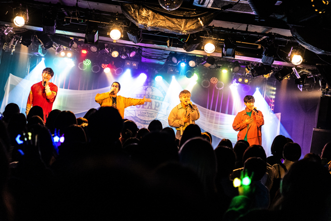 4人組ボーカルグループOverToneが、2022年12月から全国8か所をまわってきた<OverTone Live Tour 2022-2023 「POP APP」>のファイナル公演を1月28日(土) 、岡山・CRAZYMAMA KINGDOMで迎えた。