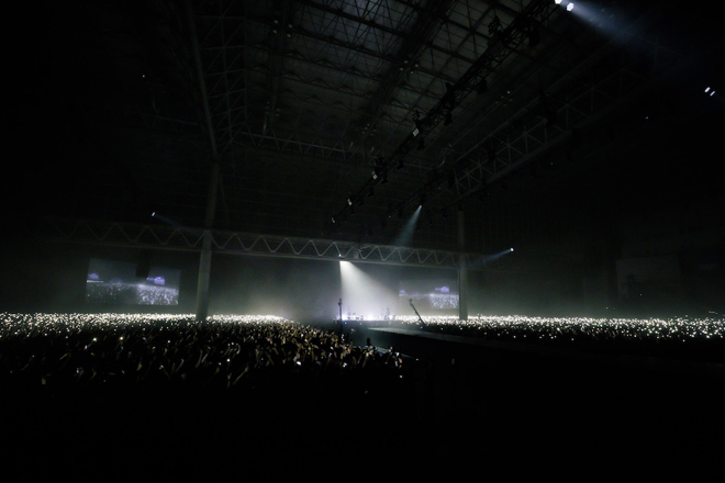 しかし、ファンの歓声とクラップは鳴り止むはずがなく、アンコールの「THE LEGEND」へ。これも『THE OTHER ONE』に収録予定の楽曲だ。SU-METALは、高く上昇し、白く光るムービングステージで歌いだす。すると、その向かいのムービングステージではMOAMETALが踊っている。ふたつのステージはゆっくりと接近していき、ひとつになった。