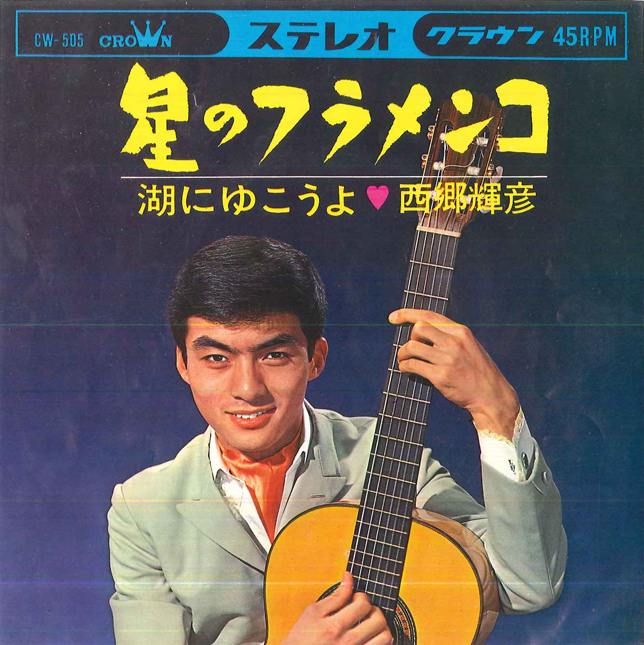 私が子供の頃好きだった彼の歌は「星娘」(1965年9月)と「星のフラメンコ」という星シリーズ。どちらもラテン系のリズムを取り入れて、売れれば何でもありという歌謡曲の本領発揮の名作だと思いますが、今回は「星のフラメンコ」の方を。これは1966年7月に発売されて、デビュー曲から2年半弱しか経ってないのに、26枚目のシングルなんですよね。ほぼ一月に1枚くらいのペースでリリースしてるんです。作詞・作曲は浜口庫之助さん、編曲は小杉仁三[じんぞう]という人です。