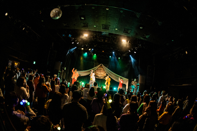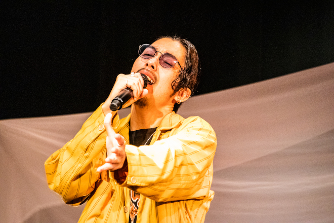 八上の呼びかけで、全員参加の振付で一体感を作りあげたハッピーでファンキーなダンスチューン「論外」。GUCCHIとアマノをメインに、跳ねるリズムで楽しく聴かせる「エリーに首ったけ」。ハッピーの中にも様々な感情のグラデーション、ファンキーの中にもたくさんの仕掛けを盛り込んで、オーディエンスを惹きつける。時が経つのが早い、そして濃い。