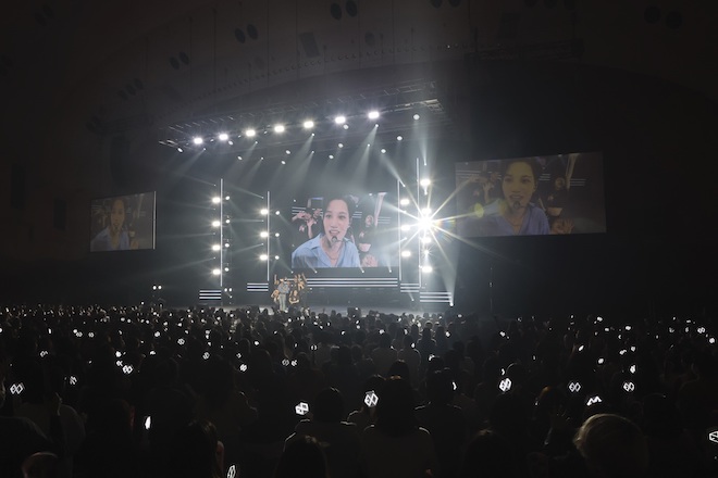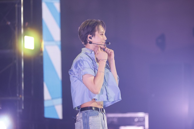 今回のソロライブは、韓国で20年と21年にリリースされた自身のミニアルバム『Mmmh』『Peaches』を中心に構成され、久しぶりにファンと会えたKAIは「みなさん、楽しんでいますか? We are ONE! EXOのKAIでーす!」と元気に挨拶をし、「待っていてくれてありがとうございます。こうしてまたお会いできて本当に幸せです。気分がすごくいいです!」と嬉しい気持ちが溢れていた。