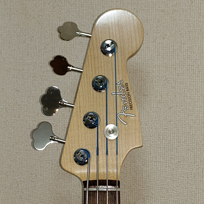 カラーはオリンピックホワイトでは無くブロンドなので、ボディー材もアルダーでは無くアッシュです。うっすらと透けて見える杢目の美しさは、やはりブロンドならではの魅力ですね。重量も4kg丁度くらいと比較的軽めなので、多分スワンプアッシュなのかな?と。