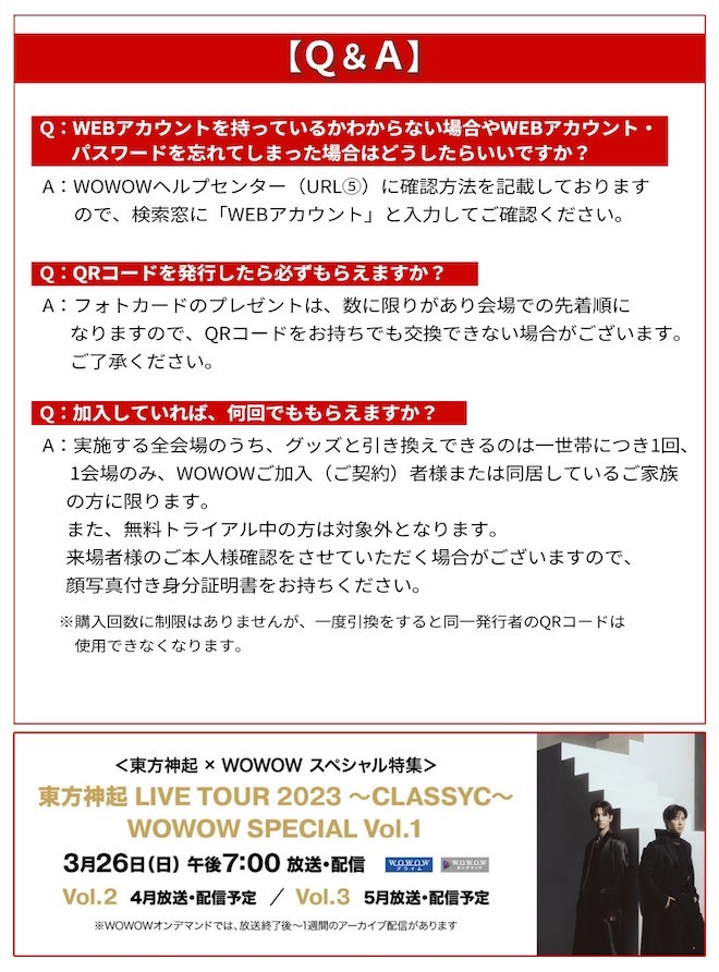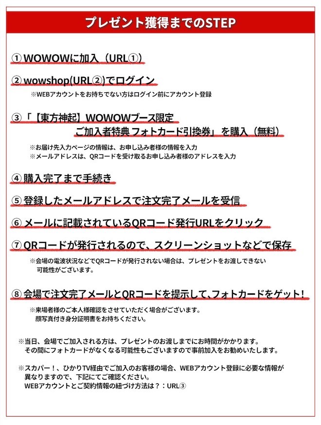 ※事前にWOWOWオンラインショッピングサイト (http://wowshop.jp/toho-wowowbenefits) にて、フォトカードの交換に必要なQRコードをご購入(無料) ください。