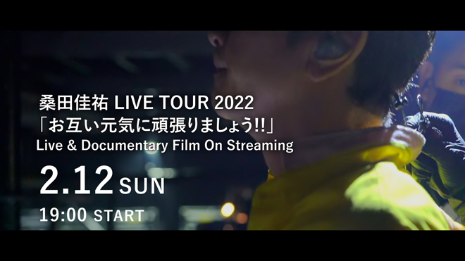 2月12日(日)に各種動画配信プラットフォームで配信される配信映像作品「桑田佳祐 LIVE TOUR 2022 「お互い元気に頑張りましょう!!」Live & Documentary Film On Streaming」の映像が一部先行公開された。