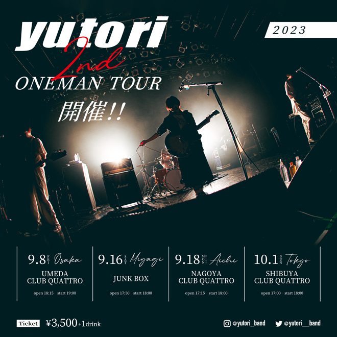 yutori、憧れの先輩バンドに挑む2マンツアーがスタート+2ndワンマンツアー開催発表