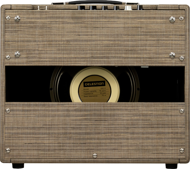 プリ真空管には12AX7を2本、パワー真空管にはKT66の互換真空管となる5881を2本搭載したオール・チューブ・アンプで、パワー・レベル・コントロールによる可変式出力となっており、1~50Wの出力を備えています。オープン・バックの構造で、セレッションの12インチ・スピーカーG12H-75 Creamback(16Ω)を1基搭載。密度の高いバルチック・バーチ・プライウッドのバッフル板にしっかりと固定することで、エネルギー・ロスを最小限に抑え、低音域の再生にも大変優れています。オープン・バックの構造と組み合わせることで芯がありながら、広がりのあるパワフルなサウンドを備えている。