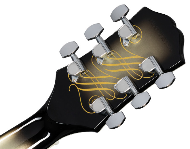 当モデルは、フランク・フラゼッタの代表作である“Berserker”がギター背面に描かれ、ヘッドストックの裏にはもう一人の世界的アーティスト コリン・フォートのデザインによるアートワークが施されている。別名「Conan The Conqueror」としても知られるこのアートワークは、1968年に作家ロバート・E・ハワードのペーパーバック小説「Conan The Conqueror」の表紙用にフラゼッタが描いたもの。