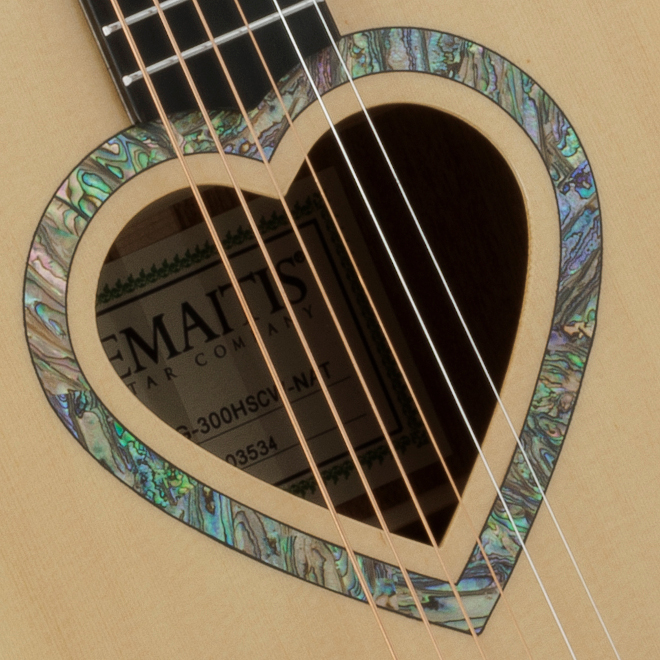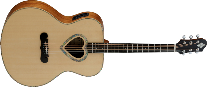 ボディーは板材の時に真空状態で熱を加えることで余分な水分やミネラルを取り除いたAAグレードのソリッド・シトカ・スプルースをトップに、マホガニーをサイドとバックに使用。トップ・ブレイシングは、最大限の鳴りを引き出すためにサウンドホールの形状やボディーのサイズを考慮して設計したフォワードXブレイシングを採用。フィンガーボードとブリッジはエボニー。アンダーサドル・ピックアップを備えたプリアンプ・システムは、ヴォリューム、3バンド・イコライザー、チューナー、ノッチ・フィルター、フェイズ・スイッチを装備したL. R. BaggsのStagepro Elementで、ボディー・サイドのコントロールにて緻密なサウンドメイクも手元で実現。マザー・オブ・パールを使用したZヘッド・ロゴ、アバロン・ロゼッタの装飾を備えたハート・サウンドホールなど、ゼマイティスならではのデザイン。カラーはナチュラルで、ネック、ボディー共にサテン・フィニッシュ。
