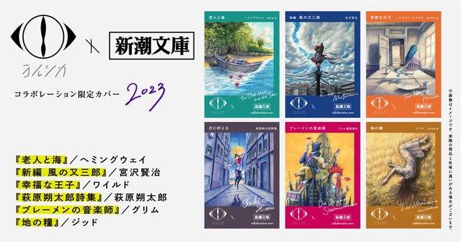 発売タイトル:新潮文庫『老人と海』/ヘミングウェイ、『新編 風の又三郎』/宮沢賢治、『幸福な王子』/ワイルド、『萩原朔太郎詩集』/萩原朔太郎、『ブレーメンの音楽師』/グリム、『地の糧』/ジッド