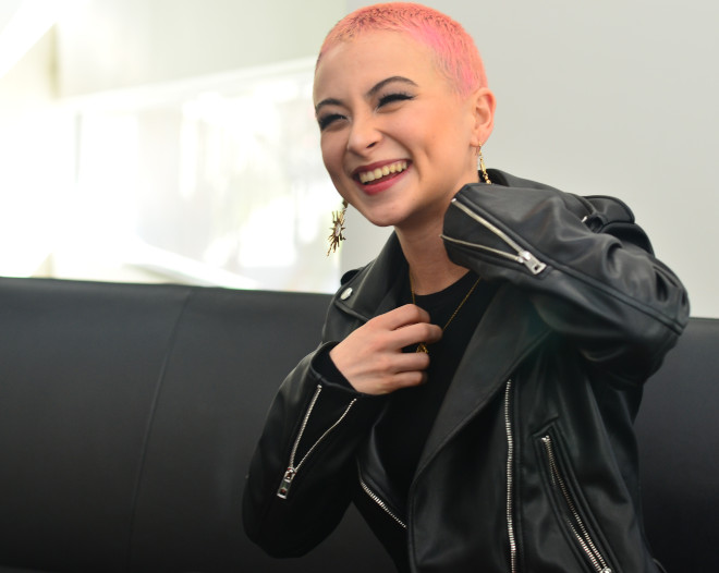 Ashley:「HIKIGANE」という曲のMVを撮ったんですが、引き金って普通に表現したらつまんないじゃないですか。これから私は音楽をやっていきますよ、これまでの自分はいい意味でいなくなりましたよっていう気合いを表現したくて、MVの中で坊主になるっていう過程を撮ったんです。プロデューサーのLUNAさんがアイデアを出してくれたんですが、最初は「えぇっ!?」って感じだったんですね。でもいっぱい考えて、いっぱい話していくうちにアリだなって。髪の毛を自分で切って、バリカンで剃っていくんですけど、最初はやっぱりちょっと緊張しました。でも心の準備はできていたから、やったらやったで気持ち良かったんですよ。気持ちが楽になるっていうか、本当に清々しい気分でした。
