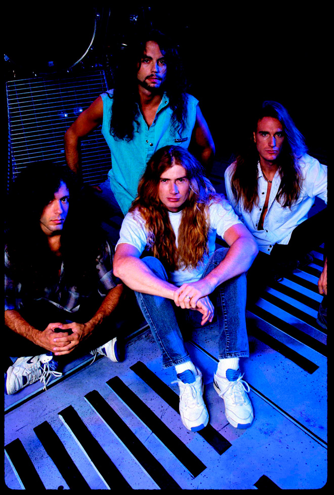 アルバム『ラスト・イン・ピース』(1990年)頃の写真(左端マーティ、前で体育座りデイヴ)