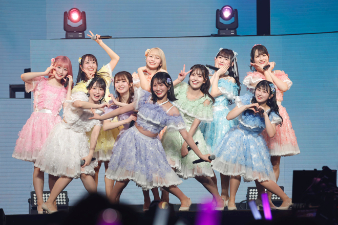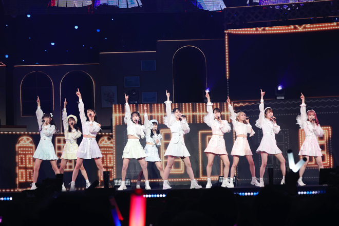 本編最後では、「最後にこの会場を、私たちとみんなの愛でいっぱいにしましょう」との野口衣織の呼びかけとともに、彼女がセンターを担当し、ファンへの感謝の気持ちとメンバーの絆を綴った、愛にあふれたポップナンバー「ラブクリエイト」も初披露し、「皆さんと一緒に幸せな空間が作れてうれしかったです。本日は本当にありがとうございました」との佐々木舞香のメッセージとともに本編は終了した。