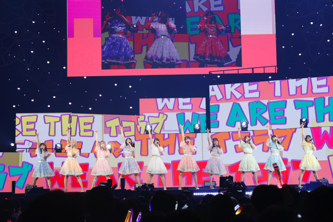 続いて=LOVEの代表曲「僕らの制服クリスマス」「ウィークエンドシトロン」「しゅきぴ」「いらない ツインテール」と立て続けにパフォーマンス。新体制となっても勢いを増す、気迫あふれるステージングで観客を魅了し会場を盛り上げた。