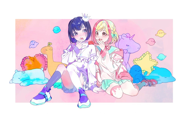 「陽キャJKに憧れる陰キャJKの歌」や「アオハル」「食べたい。」「ふわ恋」などの楽曲でSNSでも人気を集める音莉飴は、あかねとあかりの2人による青森出身のガールズユニット。「運命共同体!」は『女神のカフェテラス』の世界観とも調和した、明るく元気な“友情×青春ソング”とのことだ。