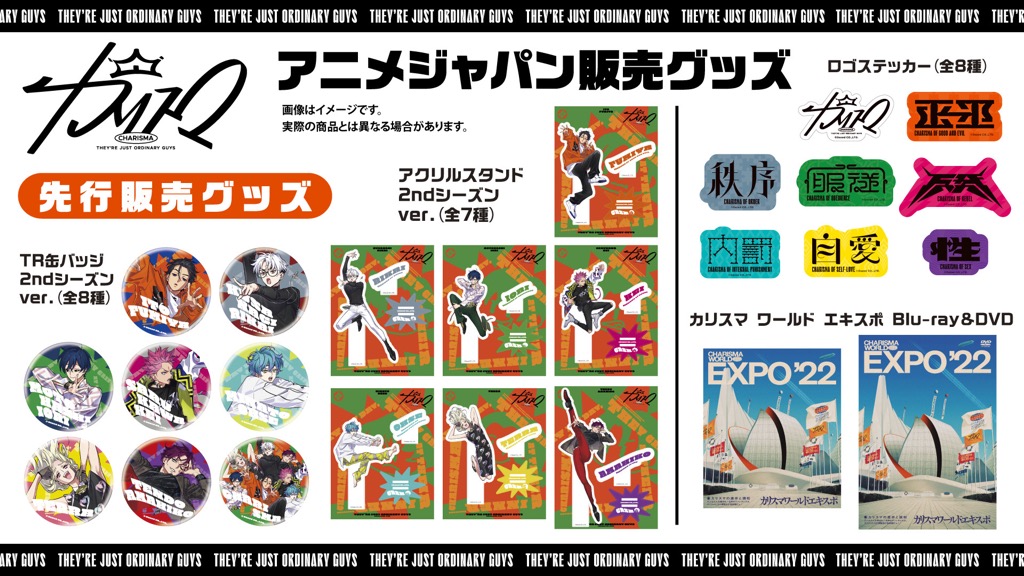 さらに、現地「EVIL LINE RECORDS/Dazed」ブースで販売されるグッズのラインアップも新たに発表された。先行販売グッズ「TR缶バッジ2ndシーズンver.(全8種)」「アクリルスタンド2ndシーズンver.(全7種)」のほか、公式グッズストア『カリスマガレージ』で販売・予約受付中の「ロゴステッカー(全8種)、「カリスマ ワールド エキスポ Blu-ray&DVD(3月22日発売)」が販売される。