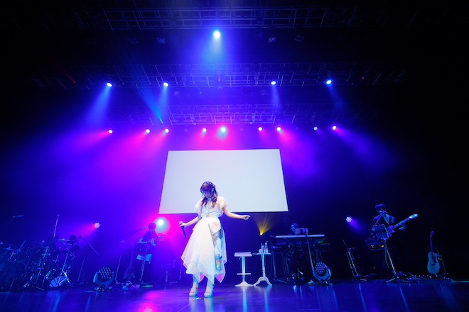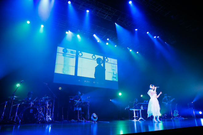 後半戦は、“夢”、“安らぎ”、“懐かしさ”といったテーマの楽曲を続けて披露。ステージの背景には、彼女自身のイラストを用いたリリックビデオが投影され、そこからも彼女の世界観が色濃く表れていった。終盤の「For good」は、”永遠”をテーマにした壮大なバラードで、これまでの選択や道のりを総括するハイライトを演出した。