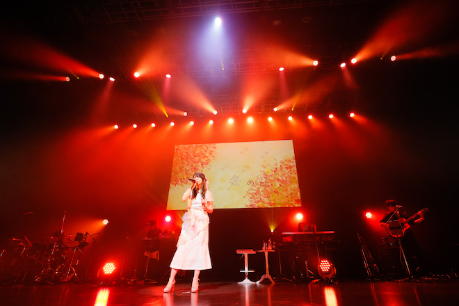 アンコールでは、そして、この季節にふさわしいロックチューン「春擬き」で盛り上げた。そしてライフワークとしている色をテーマにしたコンセプチュアルライブ「color palette」の新たな公演<color palette ~2023 Red~>が9月30日に、品川プリンスホテル クラブeXにて開催されることが告知され、ライブへの飽くなき情熱を見せる。最後にはこれも”声出し解禁”されたタイミングにピッタリな、「You can count on me」でファンとのコールアンドレスポンスをたっぷりと交わして締めくくった。