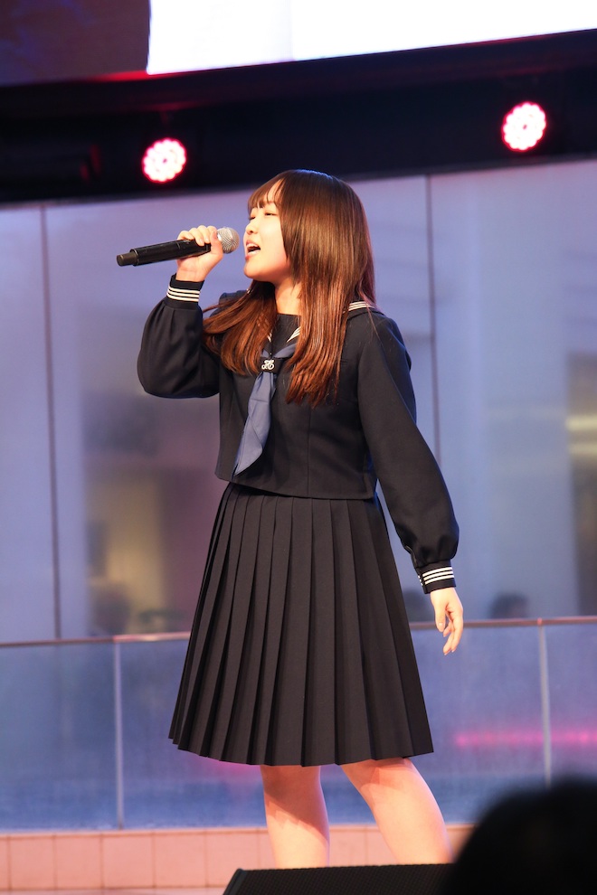 舞乃空は現役女子高生として、今日のステージで見納めとなる制服姿で歌唱。2月8日に発売になったデビュー曲「うたかた」のほか、一青窈「ハナミズキ」などを披露し、あどけない笑顔と透明感のある歌声に、会場内は一足先に春がきたような空気に包まれた。