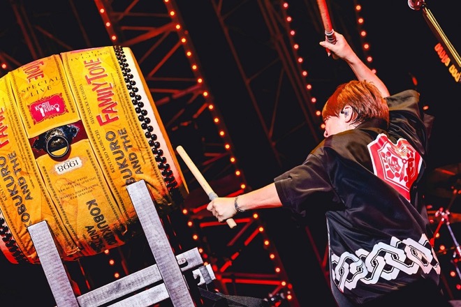 「Moon Light Party」はデビュー前から演奏されているファンにはお馴染みのナンバーだが、スカリズムのニューアレンジが新鮮に響き、間奏では“KOBUKURO AND THE FAMILY TONE”というコール&レスポンスで観客との久しぶりの掛け合いを楽しんだ。2025年に開催される『大阪・関西万博』オフィシャルテーマソング「この地球(ほし)の続きを」では、2022年の全国ツアーでも披露していた和太鼓がより大きいサイズで登場。これを小渕が力いっぱい叩き、サビの「こんにちは」ではMVでの振付を観客と共に。最高潮を迎えて本編が終了した。