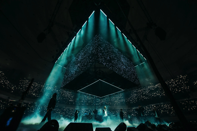 今回、総合演出を担当したのはこれまでKANDYTOWNの数々のミュージックビデオを出がけてきたdutchこと山田健人。LEDスクリーンを贅沢に使用したステージには、楽曲が変わるごとに綿密に用意された映像と照明が映し出され、インスタレーション的な美しさを伴うステージングが実現した。
