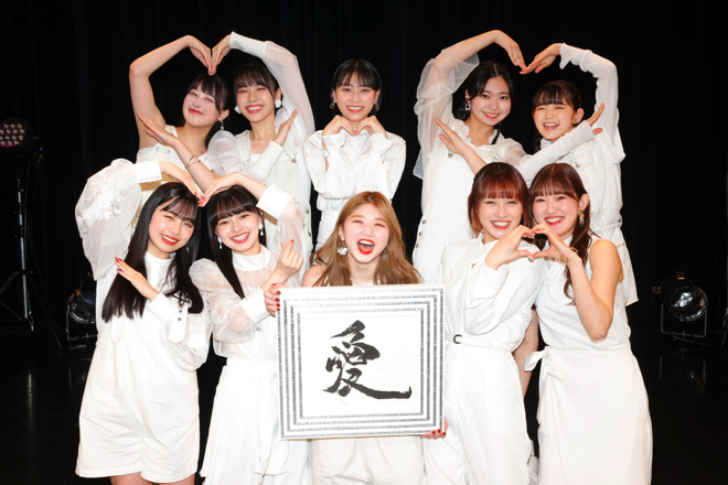 続けて、アルバムのジャケット写真に竹内が書いた“愛”という文字が採用されている点にもふれ、竹内は「今の私が思う“アンジュルム愛”が伝わったらいいなと思いました」とコメント。今のアンジュルムのカッコ良さも表現したかったといい「いつもは愛の字の最後の払いを、上に持っていくことが多かった。昔のアンジュルムなら上に払っていたと思うんですけど、今はかっちりとしたカッコ良さがプラスされたので、それをイメージしたくて今回は長めに止めることを意識しました」と、正師範らしく字の見どころを語ってくれた。