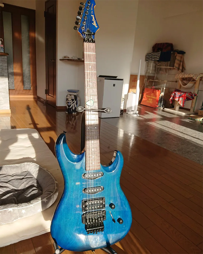 多感な時期に熱中したものというのは、何年経っても消え失せたり色あせたりすることはなく、ふとしたきっかけで猛烈に再燃したりするものですよね。1980年代、HR/HM全盛の時代に登場したモデルですが、今なおいろんなシーンで活躍してくれるであろう鉄板スペックなので、このまま末永く楽しめますね。アームの径はわかりませんが、フロイド・ローズのパテントをとった正規品ですから、おそらくフロイド・ローズ・オリジナルと同じサイズなのではないでしょうか。37年ぶりのギターライフ、どうぞお楽しみあれ。(JMN統括編集長 烏丸)