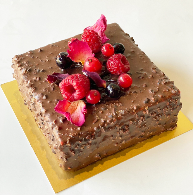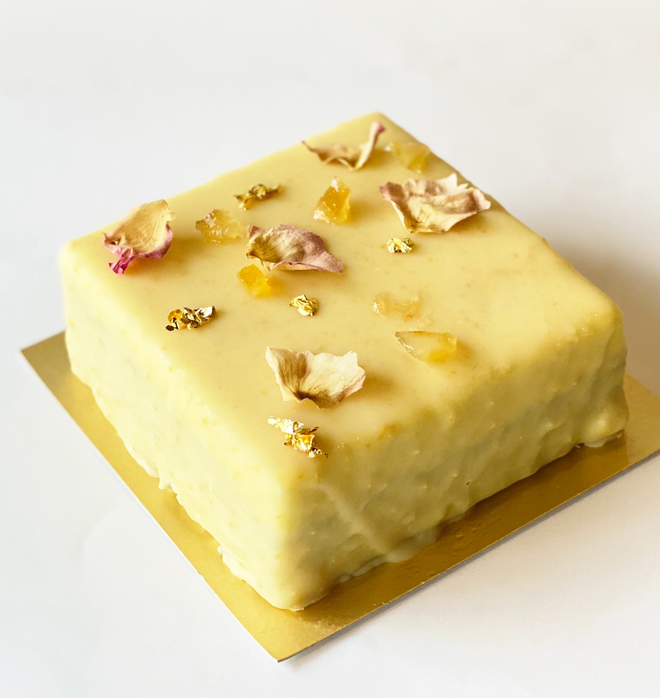 オリジナルケーキは2種類。バルサミコのシロップを染み込ませたカカオ入りスポンジ生地に、チェリーとラズベリーのバタークリームと赤いフルーツのような香りを持つ濃厚なチョコレートクリームを6層に重ね、アーモンドクランチ入りのザクザクとした食感を楽しめるダークチョコレートでコーティングした、コクのある甘酸っぱい「ノワール・ルージュ」。もう1種は、地中海のレモンをベースにしたレモンクリームとポピーシード入りのダクワーズ生地に軽いレモンのシャンティクリームを重ね、擦り下ろしたレモンを加えたホワイトチョコレートでコーティングした爽やかさを感じる味わいの「ブラン・ジョンヌ」だ。ケーキは全国へ配送可能ということ。