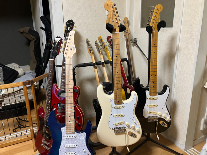 フェンダージャパンのクラプトンもどきとフェンダーメキシコのジミヘンもどき。もうギターはこれで打ち止めにしようと思います。