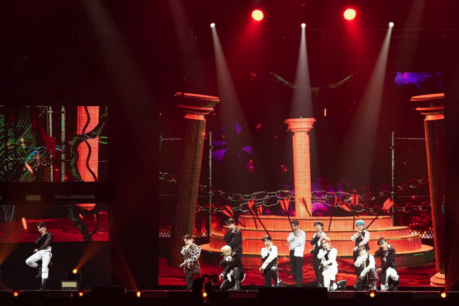 そして、熱気に包まれ幕を開けたショーでは、中盤に登場。最新作の衣装を身にまとい、「Phobia(Korean ver.)」と新曲「Tiger」を初披露した。「Tiger」は、4月5日にリリースする7thシングル「TROPICAL NIGHT」のリード曲で、昨夜のMVティザー公開により期待が高まっていた楽曲だ。(※川尻蓮は足の負傷により、演出内容を一部変更してのパフォーマンス)