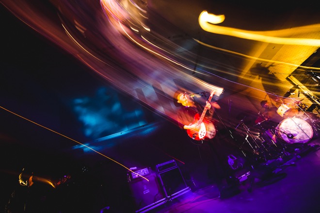 鳴り止まない歓声に改めて感激するメンバーからは高揚感が伝わってくる。くだけたトークを交えながらのMCを挟んで披露されたのは、世界初の“人工流れ星”の開発に挑む企業ALEへの応援歌として作られた、最新アルバム『INNOCENCE』収録曲「ALE」。そして1stアルバム『創』から「spaced out」、11thアルバム『Λ』から「水の夜に」と続く。これぞACIDMANの真骨頂とも言える、たゆたうような浮遊感と静と動が行き交うカオスな展開の楽曲で、会場をサイケデリックなアート空間に染め上げていく。この幅の広さがあるからACIDMANは堪らない。