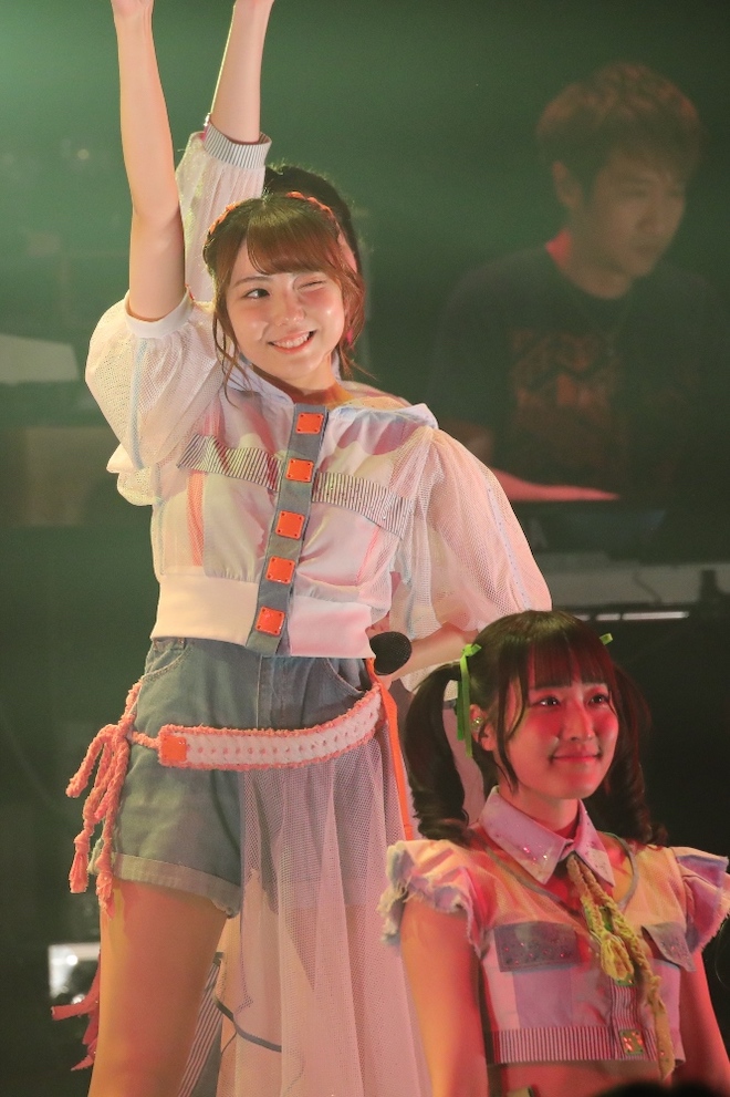 「プライベイト」から「あやふわアスタリスク」まで、ゆったりとしたリズムで進行していくブロックでは、水色を基調とした「フラフラ」衣装が青い照明の中にゆらゆらと溶け込み、「シャーベットマーメイド」ではゾクリとさせられる終わり方を見せる。