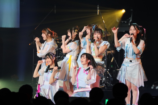 DIALOGUE+は本ツアー全公演を、過去のライブで着用したことのある衣装で披露しており、東京ではファンも思い入れの強い「フラフラ」衣装で登場。まずは「シュガーロケット」まで3曲を立て続けに歌うと、MCでは丁度この日に誕生日を迎えたバースデーガールの鷹村を祝う拍手が起こり、さらに前回のライブ「puzzle」では叶わなかった8人全員揃ってのパフォーマンスが実現したことを喜ぶ拍手も改めて起こった。