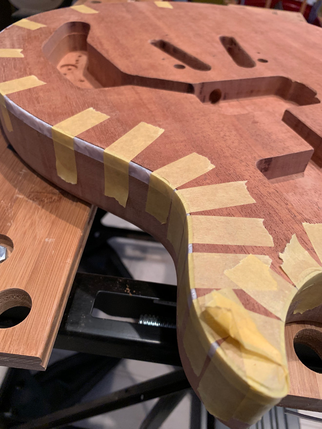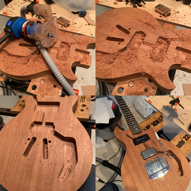 東儀:なんとなくです。寸法さえ正確に測って、それ相応のいい材質を選べば間違いなくいい音がするだろうと。目の詰まった重いマホガニーを手に入れたりはしました。ネックはメイプルにローズ指板、ジョイントは後ろからの4点留めです。3シングルで枯れた音が出る3本目を考えてますよ。