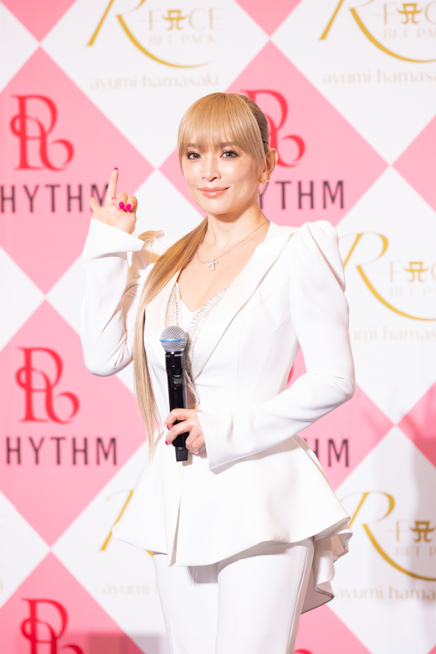 浜崎あゆみは、コスメ商品を販売しているリズム株式会社のブランドアンバサダーに就任。リズム株式会社が新たに開発した、蓋を開けてすぐ使用できる「一剤式製剤」の炭酸ガスパック「R-FACE BFTパック(アールフェイス BFTパック)」をコラボ商品として展開する。
