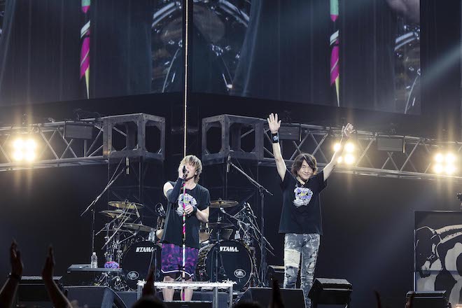 少し放心したような顔で「ちょっと感動だね。一人だったら泣いてるね」と笑みを浮かべたKISHOWは、「本当にやれて良かった。正直、ヤバいセトリです。腹ちぎれそうです。今日、足が攣ったのも2回や3回じゃございません! でもみんながいたから頑張れたし、楽しい!」と本音を漏らし、アニソンは「頑張ろうとか勇気とか、普遍的なとこに行きやすいけど、でもそういう普遍的なテーマこそが、我々人間の生きて行く根源、嘘偽りない感情や言葉の動力源だったりするのかなと、改めて気づかされました」と、真っ直ぐに語る。