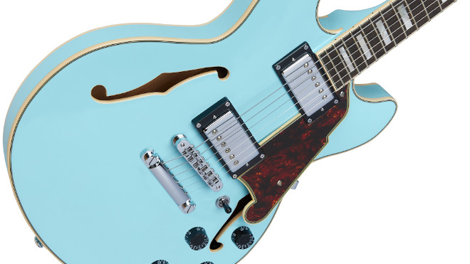 D’Angelico(ディアンジェリコ)から、小振りな14インチ幅で演奏性の高いセミホローボディーのダブルカッタウェイ・モデル「Premier Mini DC」の新カラー(スカイ・ブルー)が登場した。